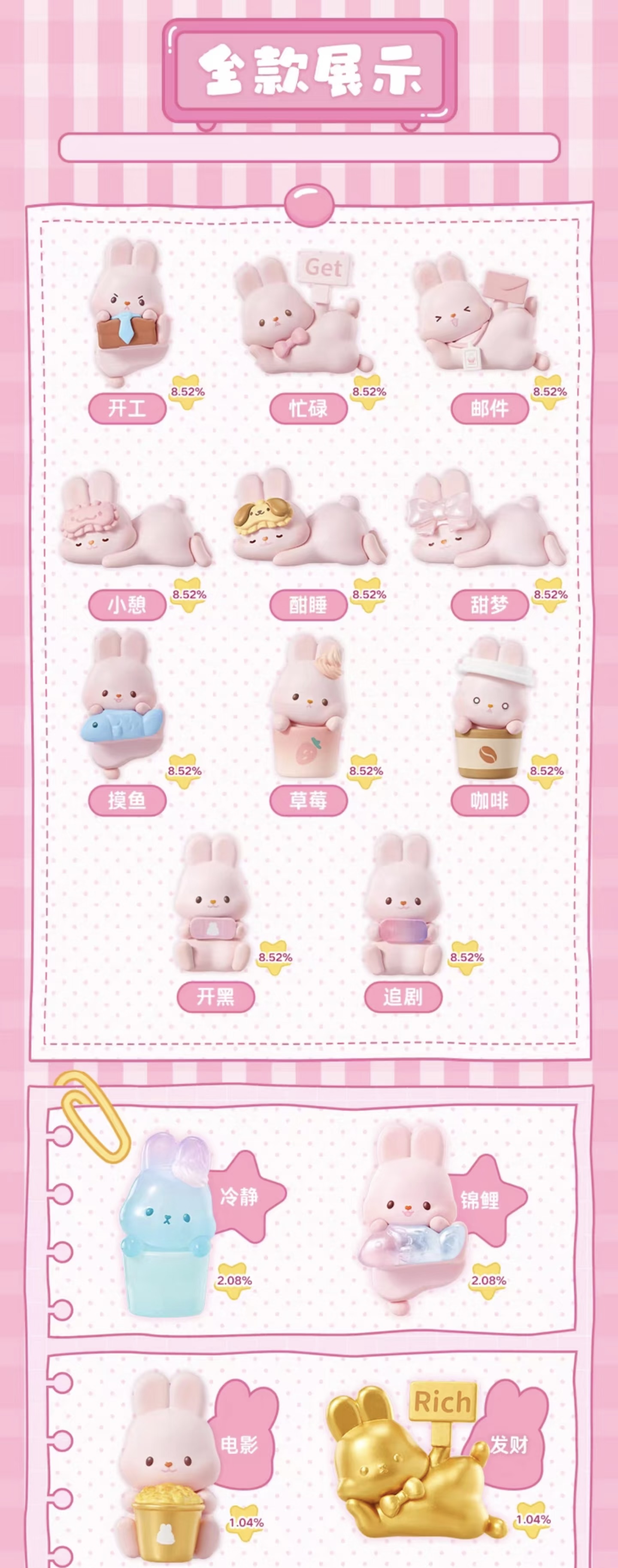 MOMO bunny 24h Life Diary Series Blind Box$16.900Sales volume1pc1bagfull set(4bags)Inventory shortageshare toproduct detailsProduct Reviewsup to dateGood reviewsBad review0.00 Reviews50% 40% 30% 20% 10% Review this productShare your thoughts with other customersWrite a reviewNo reviews yetHome/momo bunny series/MOMO bunny 24h Life Diary Series Blind Box